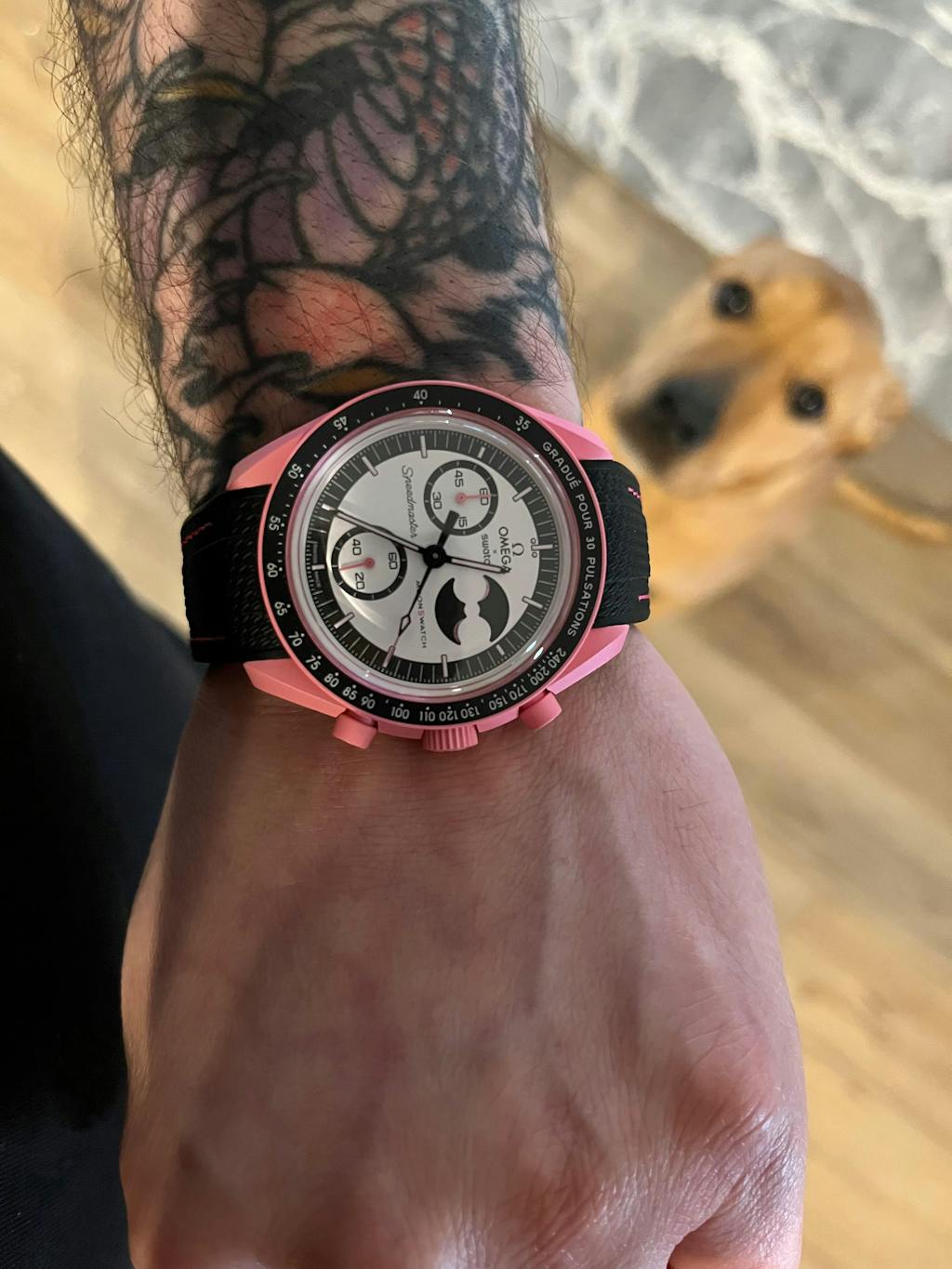Disclaimer: This strap is not manufactured or endorsed by The Swatch Group Ltd. It is a third-party accessory designed for use with the Omega X Swatch BioCeramic MoonSwatch Mission to the Pink Moonphase.