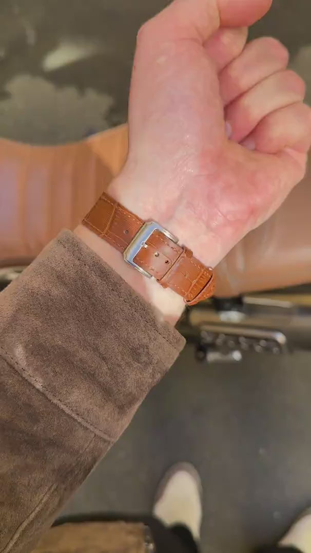 Our embossed alligator watch straps are meticulously handcrafted from premium Italian leather, renowned for its exquisite quality and craftsmanship. Boasting an elegant alligator pattern, these straps not only exude refined luxury, but they're also exceptionally resilient against daily wear - offering both lasting comfort and classic aesthetics! With easy maintenance required and their signature texture offering both lasting aesthetics and lasting comfort!